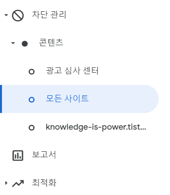 - 콘텐츠 아래에서 차단을 설정할 사이트를 클릭합니다.(사이트가 목록에 보이지 않는 경우 추가할 수 있습니다.)