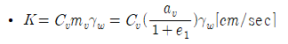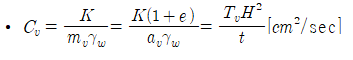 여기서, K: 투수계수[무차원], m_v: 체적변화계수[cm^2/kg], gamma_w: 물의 단위중량[kg/cm^3], e: 간극비