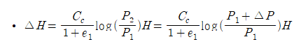 여기서, △H_t: t시간후의 압밀침하량, U: 압밀도, △H: 최종침하량