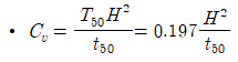 여기서, T_50: 압밀도 50%에 대한 시간계수, T_90: 압밀도 90%에 대한 시간계수, t_50: 압밀도 50%에 도달하는데 시간, t_90: 압밀도 90%에 도달하는데 걸리는 시간, H: 배수거리