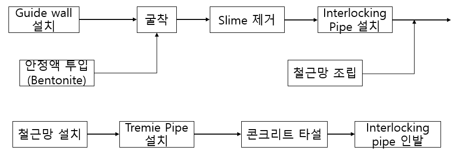 ·공사비가 고가이다. ·Bentonite 이수처리가 곤란하다. ·굴착 중 공벽의 붕괴 우려가 있다. ·연속시공이 필요하다. ·고도의 기술과 경험이 필요하다. ·슬라임 처리가 미숙할 경우 누수현상이 발생한다. |