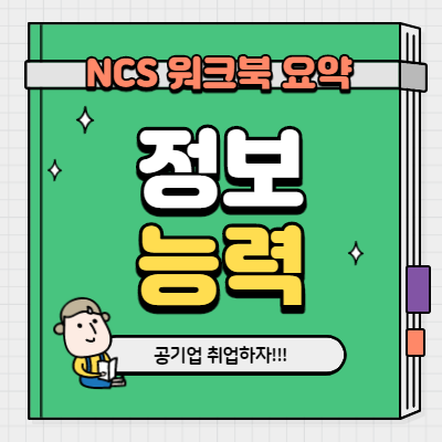 모듈형 NCS 전체 10개 능력 중 일곱번째인 정보능력입니다. 이번 포스팅에서는 컴퓨터활용능력과 정보처리능력에 대해 공부하겠습니다. (이 포스팅은 대중교통을 이용하거나 짬나는 시간에 휴대폰으로 보는 것을 추천드립니다.)