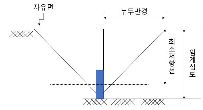 여기서, R: 누두반경, W: 최소저항선