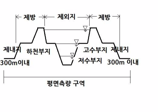 ③무제부: 홍수시의 물가선의 흔적보다 약간 넓게(100m 정도 실시)