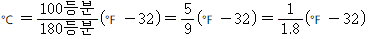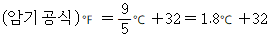 | 섭씨온도와 화씨온도와의 관계(★★★필수암기★★★) | |