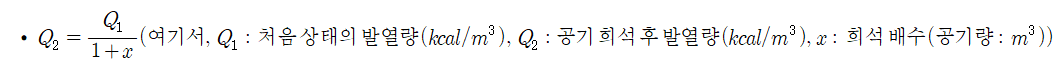 - 천연가스를 공기로 희석하여 공급하는 방법(저열량)