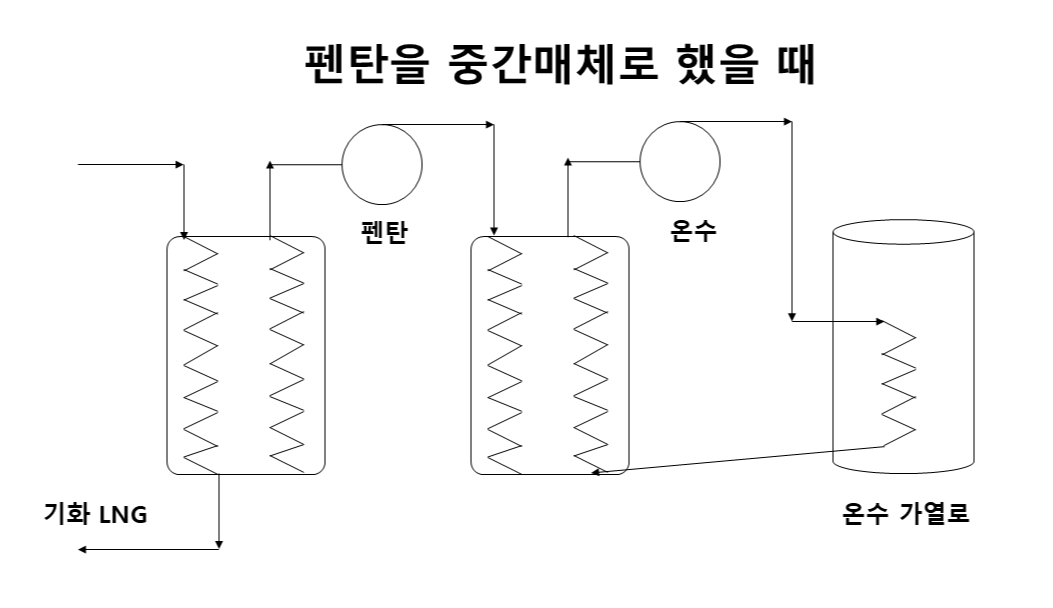 - 중간매체법: 베이스로드용으로 프로판(C3H8), 펜탄(C5H12) 등을 사용한다.