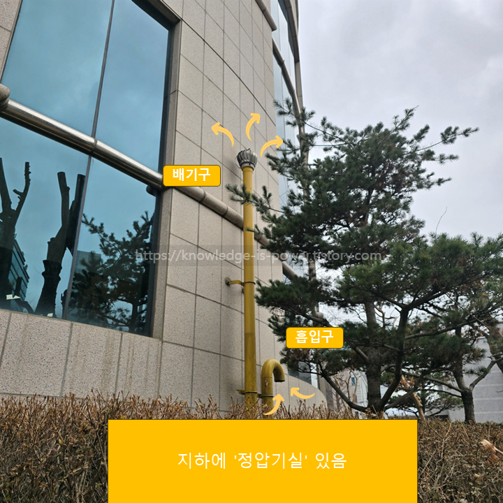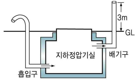 | · 흡입구는 보통 낮은 위치에 설치되며, 빗물이 들어가지 않도록 입구가 아래를 향해 180 º 꺽어져 있습니다. · 배기구는 안전상의 이유로 지면으로부터 5m 떨어지게 되어있습니다. |
