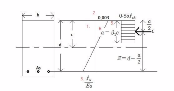 1)철근 및 콘크리트의 변형률은 중립축으로부터 거리에 비례하는 것으로 가정할 수 있다.