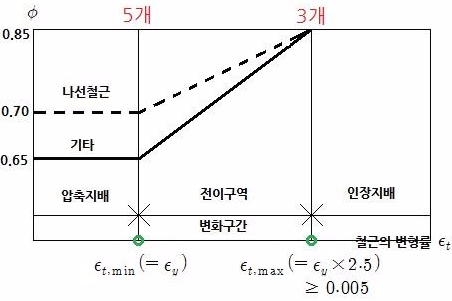 ※인장지배의 경우, 철근이 주도권을 잡아 연성파괴가 일어나기에 0.85로서 신뢰도가 높다.