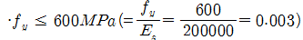 3)철근의 응력이 설계기준항복강도 fy이하일 때, 철근의 응력은 그 변형률에 Es를 곱한 값으로 하고, 철근의 변형률이 fy에 대응하는 변형률보다 큰 경우 철근의 응력은 변형률에 관계없이 fy로 하여야 한다.