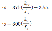 여기서, C_c: 피복의 최소두께, f_s: fy의 2/3, k_cr: 건조환경은 280, 그 외의 환경은 210이다.)