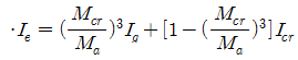 (여기서, M_cr: 균열모멘트(=f_r*(I_g/y_t), 균열을 일으키는데 필요한 모멘트, 재료역학 sigma=M*y/I에서 유도, f_r(=0.63gamma*root(f_ck)): 콘크리트의 휨 인장강도(파괴계수), gamma: 전경량 0.75, 모래경량: 0.85), y_t: 중립축에서 인장측 연단까지의 거리, M_a: 사용하중에 의한 모멘트)