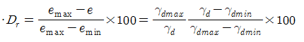 (emax: 가장 느슨한 상태의 공극비, 감마max: 가장 조밀한 상태의 건조단위중량, e: 자연상태의 공극비)