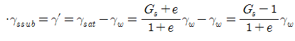 4)수중단위중량(Submerged unit weight, gamma_sub, 흙 전체의 부피당 흙 만의 중량)