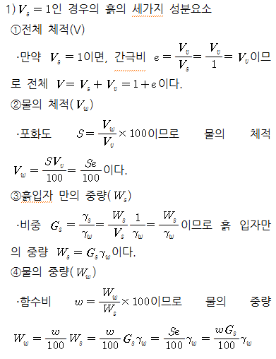 5)만약, 간극에 물이 완전히 건조한 경우, V_w=0, V_v=V_a이므로 S=0% 이다.