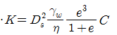 (여기서, Ds: 흙 입자의 입경(보통 D10), gamma_w: 물의 단위중량(g/cm^3), eta: 물의 점성계수(g/cm sec), e: 공극비, C: 합성 형상계수(composite shape factor), K: 투수계수(cm/sec)
