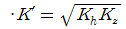 ②수평방향의 투수계수(Kh)가 등가등방성 투수계수(K')보다 크다.