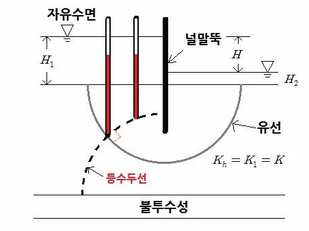 ①수평방향의 투수계수(Kh)가 수직방향의 투수계수(Kz)보다 크다.