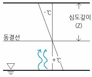 ②동결심도(Frost depth): 지표면에서 동결선까지의 깊이를 말하며, 일본의 데레다 공식이 많이 이용된다.
