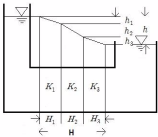 2)또한, 전손실수두는 각 층에서의 손실수두의 합과 같다.
