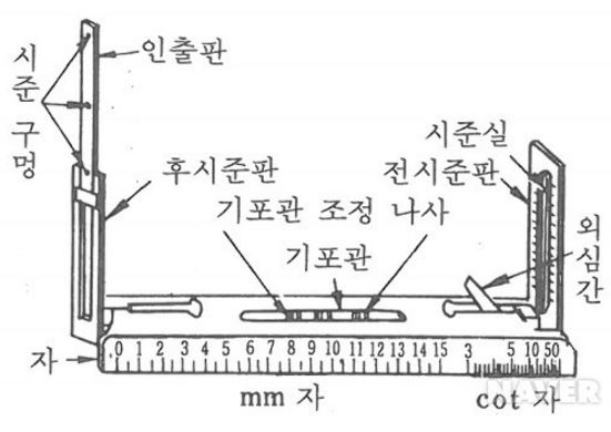 (1) 앨리데이드의 양 시준판의 최소 눈금은 양시준판 간격의 1/100이다.