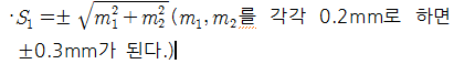 - 방사법에 의한 오차: 방사법은 각 측점들을 개별적으로 시준하므로 시준 오차(m1)와 거리 오차 및 축적에 의한 오차(m2)의 합으로 표시한다.
